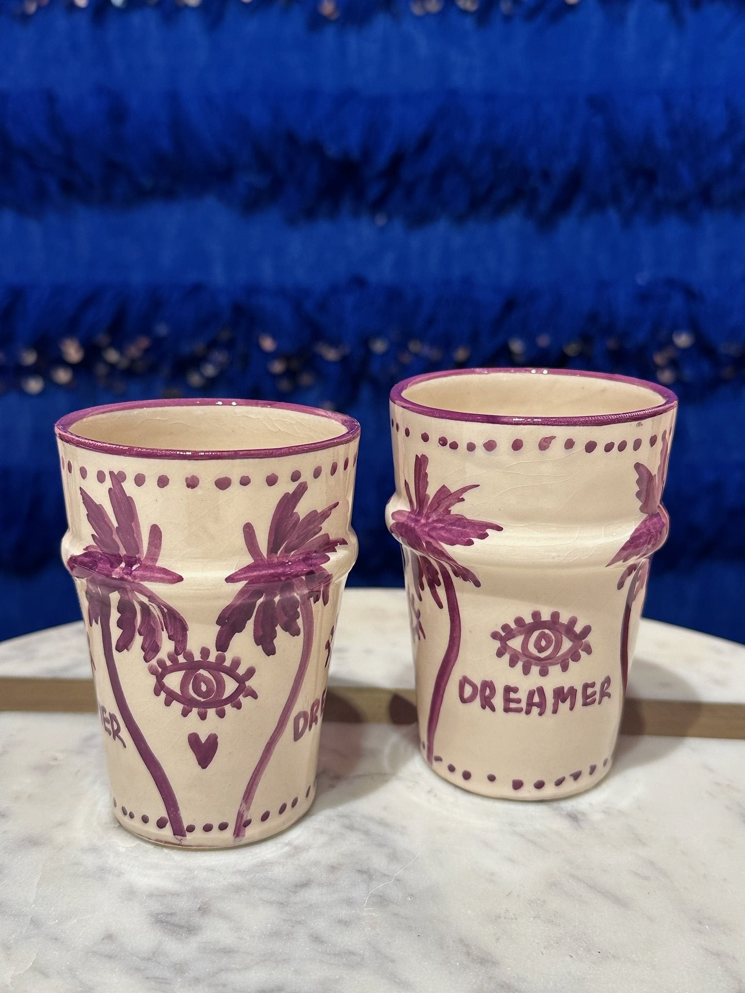 Dreamer Cappuccino cup Palmtree Lila/wit 10 cm.