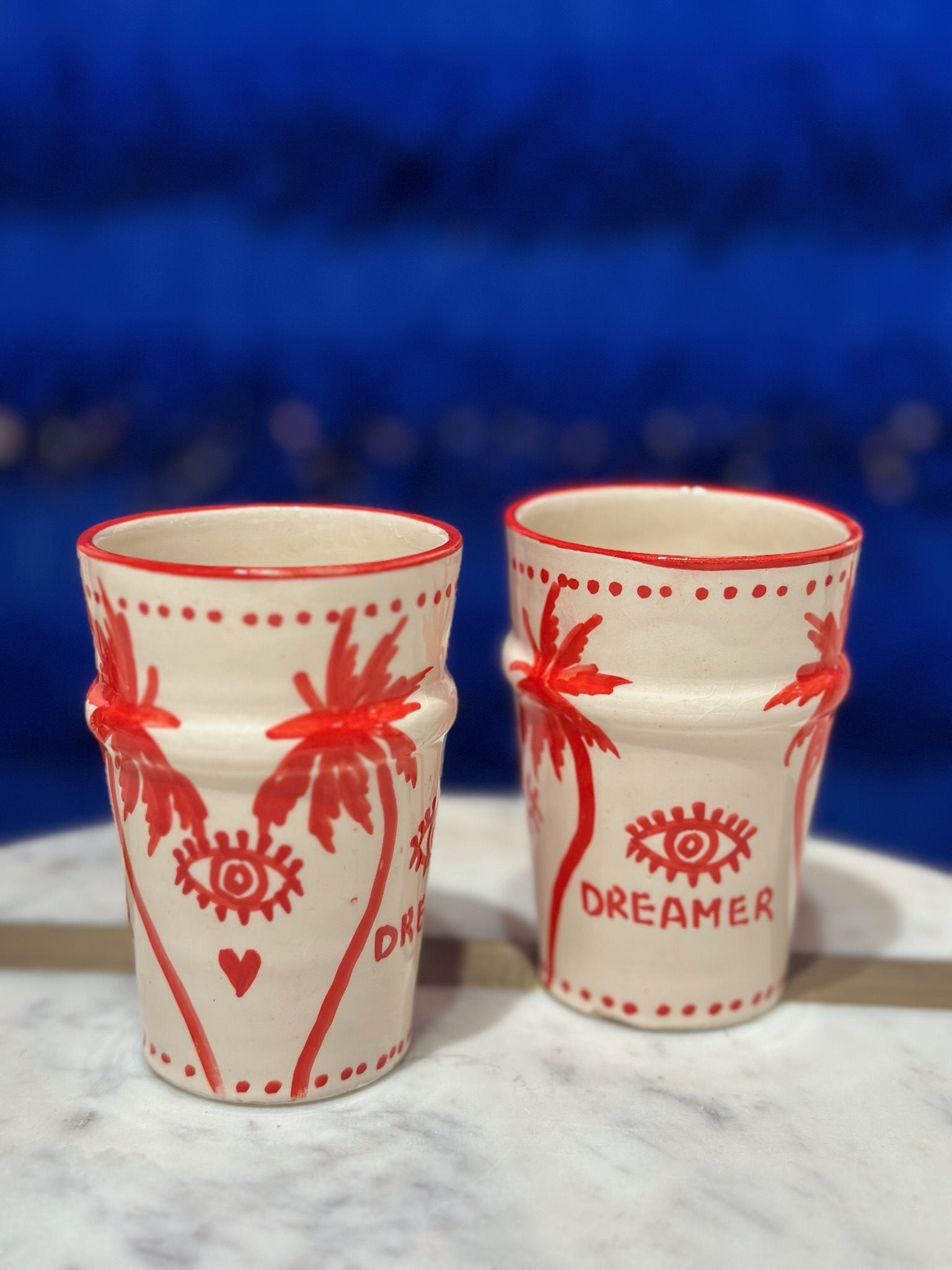 Dreamer Cappuccino cup Palmtree Rood/Wit 10 cm