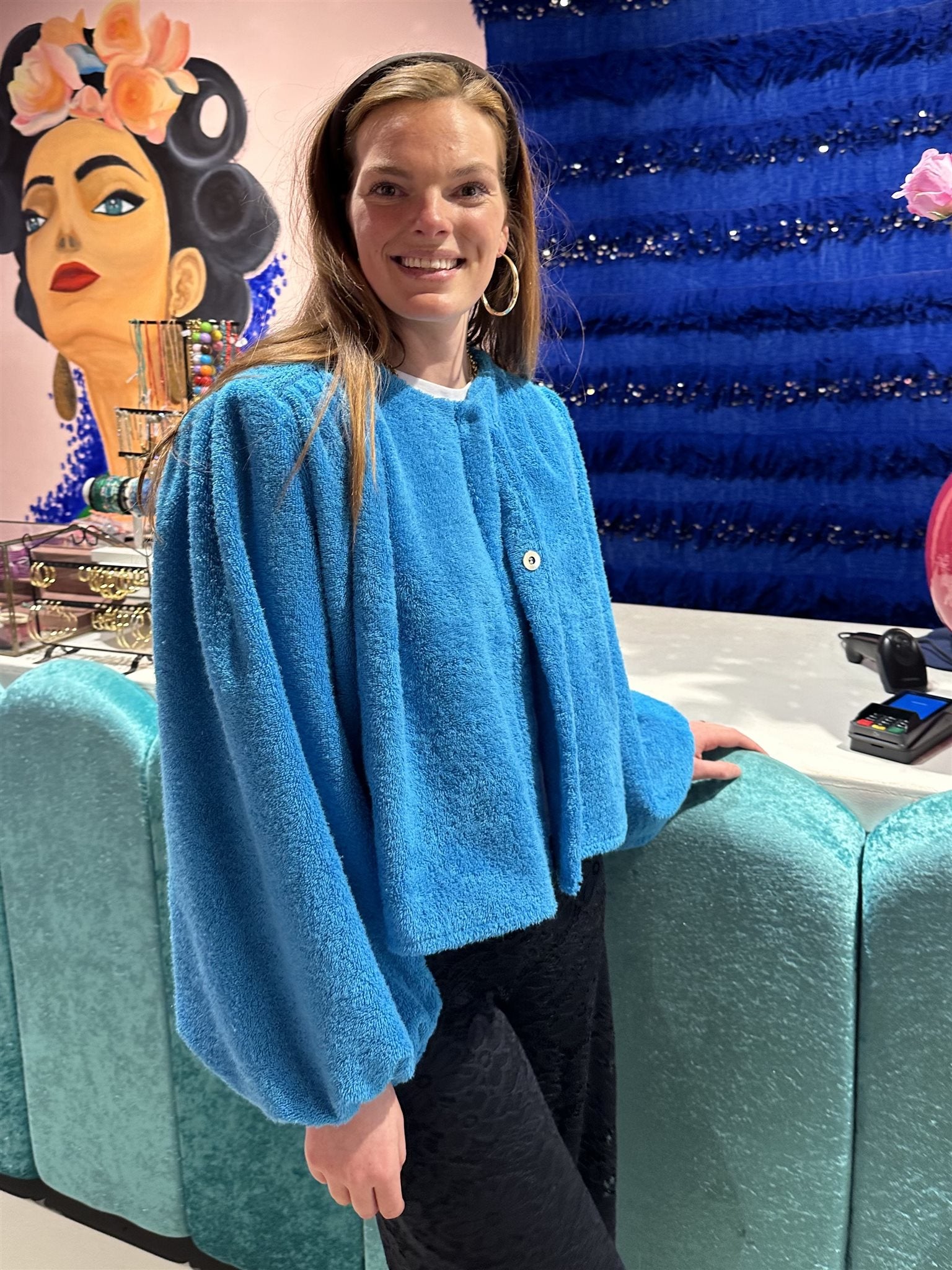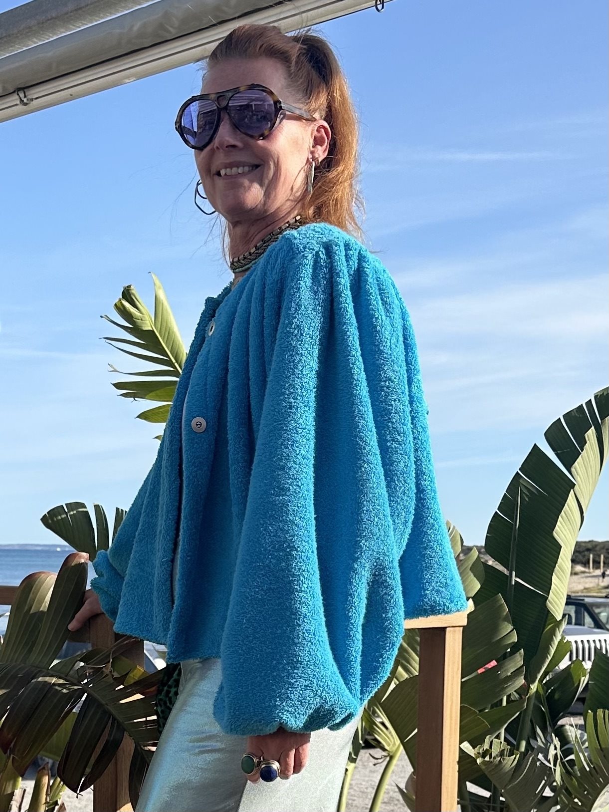 De Chloé Kimono Blouse in Blauw badstof is een ware eyecatcher. Chic, uniek en helemaal in Dreamer Style. De luxueuze badstof en elegante kimono look geven elke outfit een stijlvolle en moeiteloze flair. Draag ‘m casual over een basic of maak een statement met een all-over velvet look. Welke Dreamer combineert ‘m als eerste? Maat is geschikt voor mt XS-L