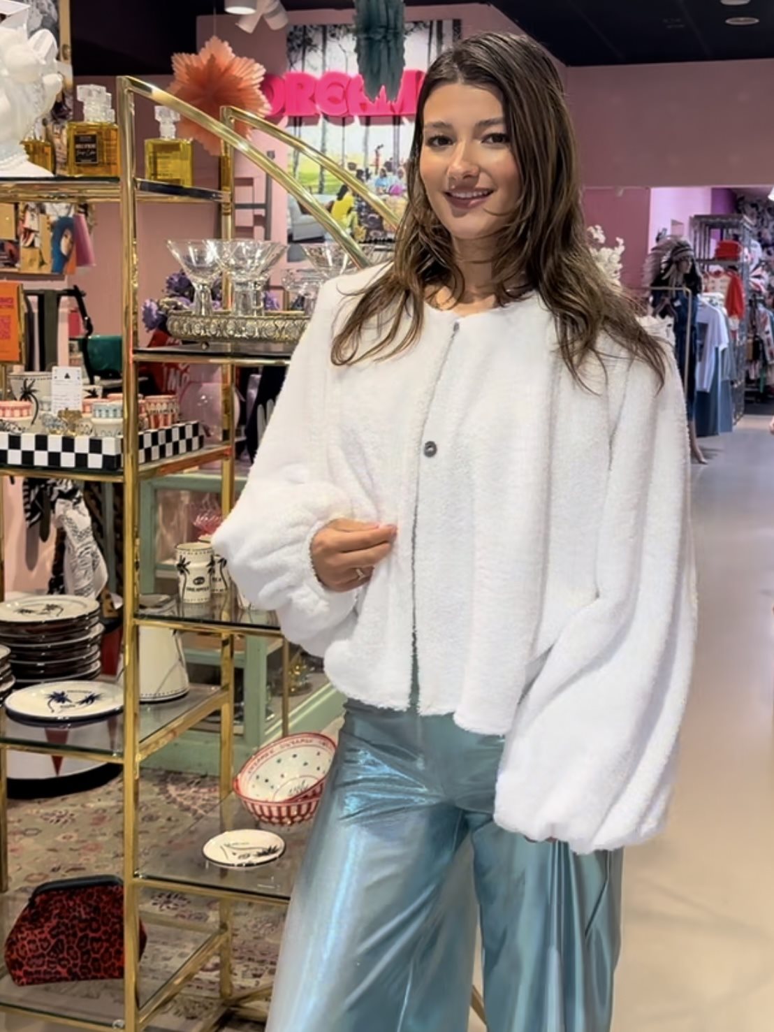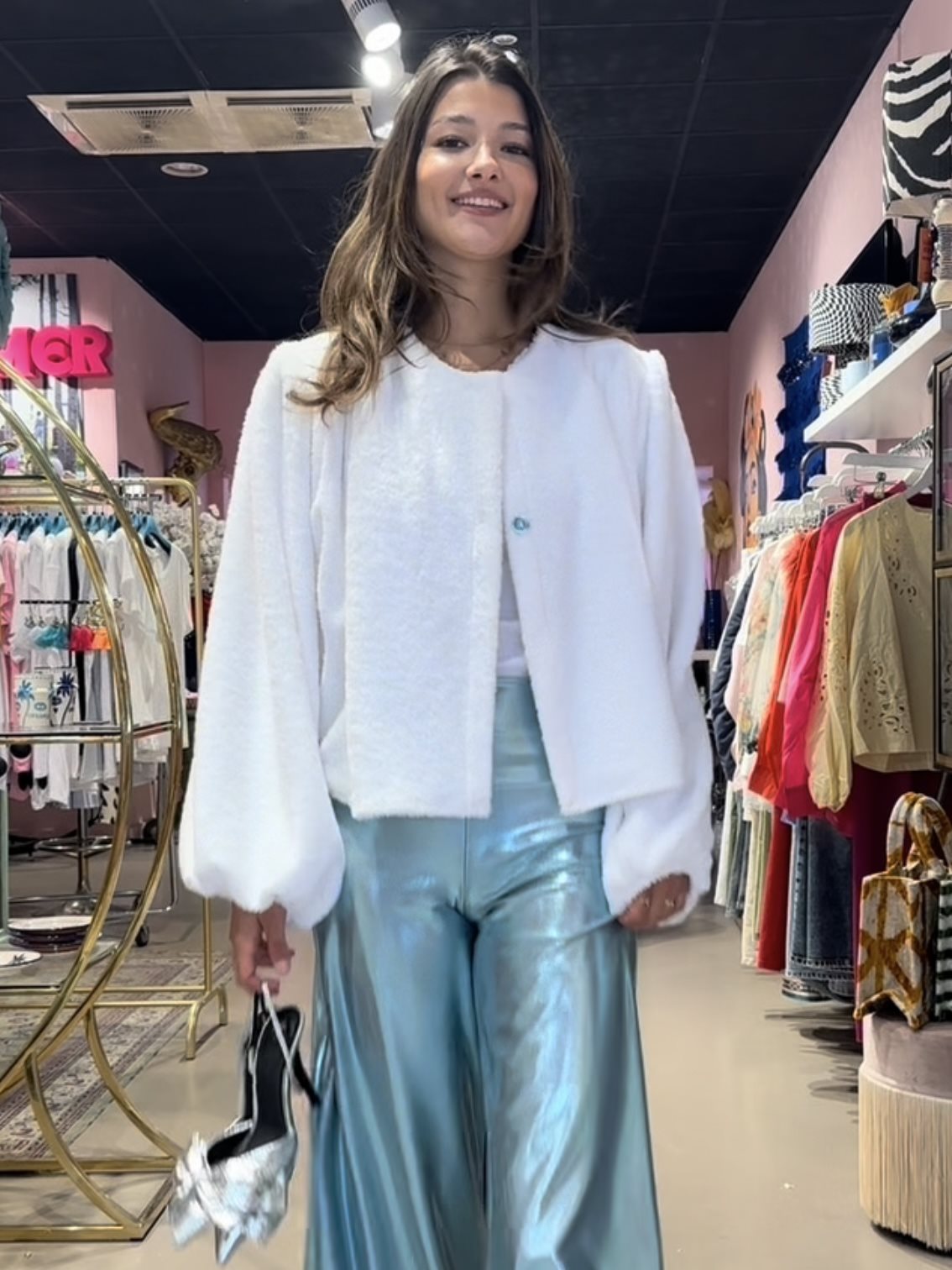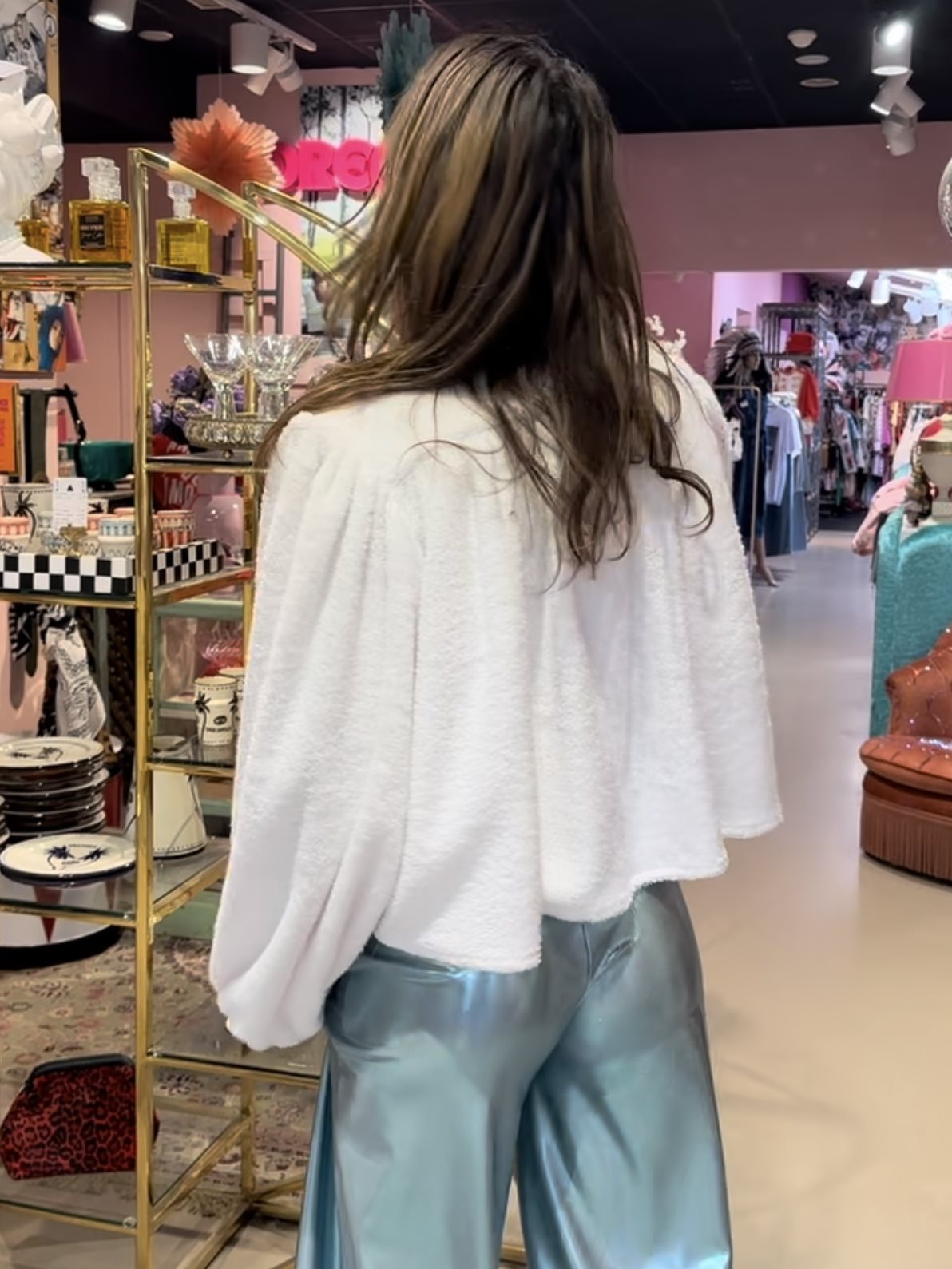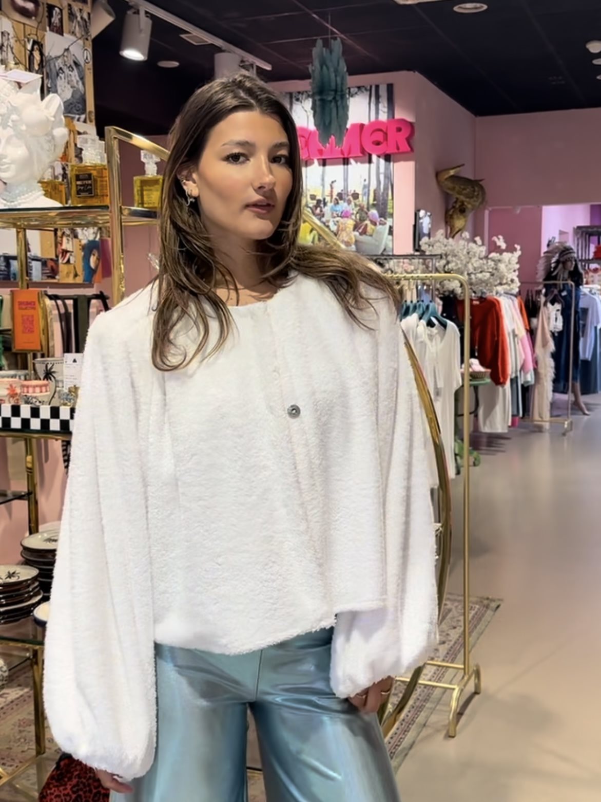 De Chloé Kimono Blouse in witte badstof is een ware eyecatcher. Chic, uniek en helemaal in Dreamer Style. De luxueuze badstof en elegante kimono look geven elke outfit een stijlvolle en moeiteloze flair. Draag ‘m casual over een basic of maak een statement met een all-over velvet look. Welke Dreamer combineert ‘m als eerste? Maat is geschikt voor mt XS-L