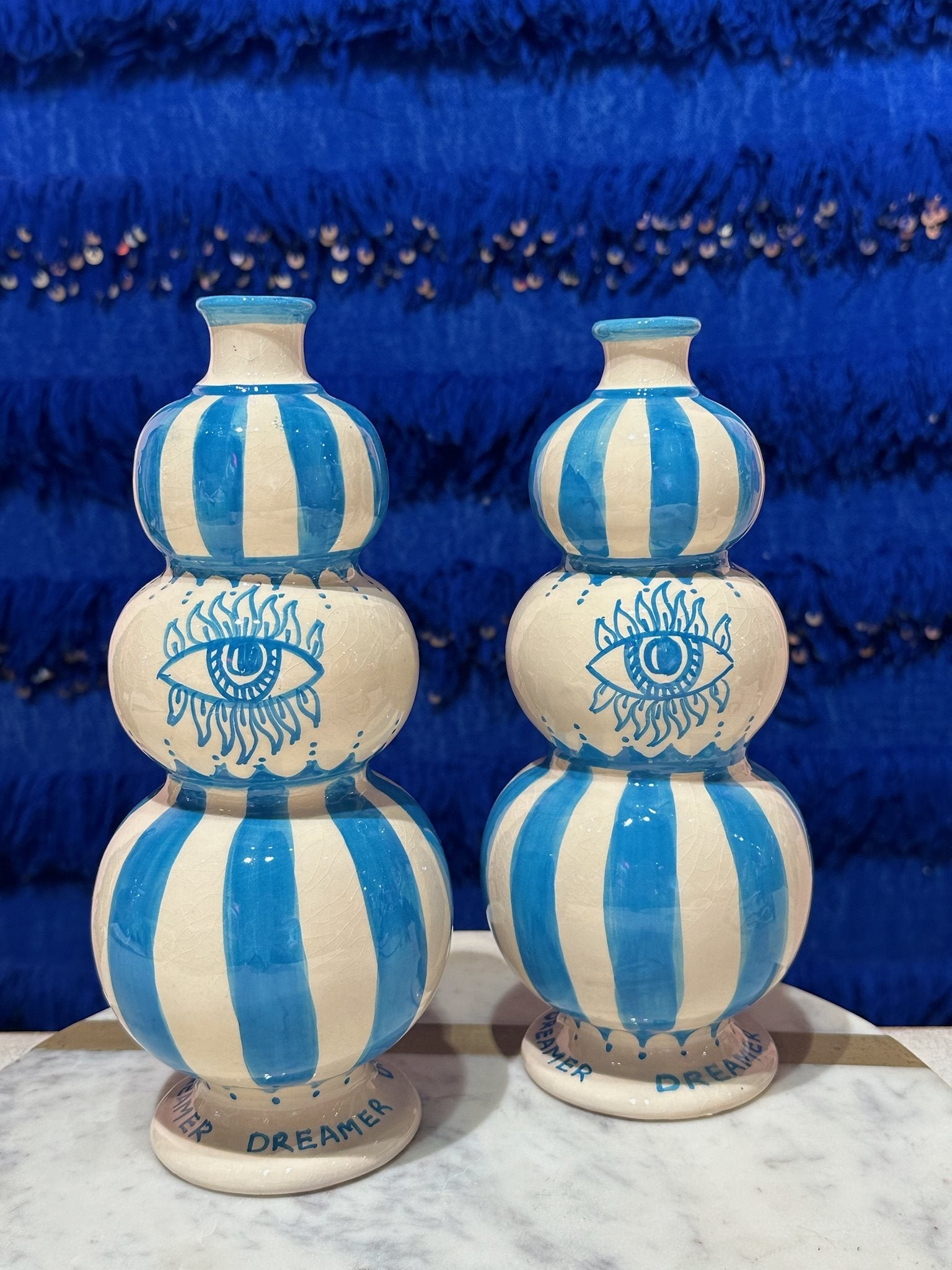 Dreamer Circus kandelaar in turquoise/wit. Zo verfijnd, zo tijdloos, perfect veelzijdig en handgeschilderd. Ze mixen & matchen prachtig met de verschillende serviesstijlen.