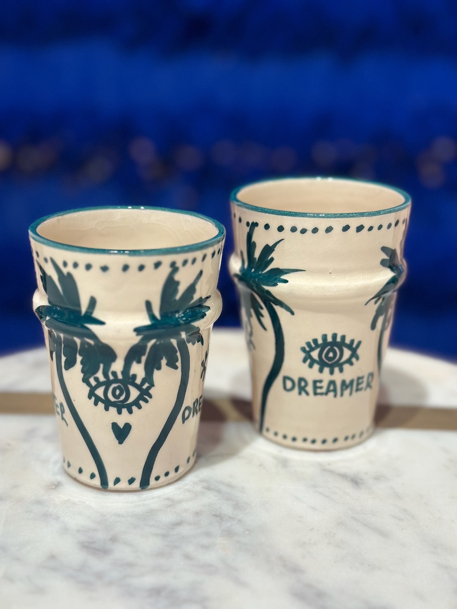 Breng die moeiteloze mediterrane sfeer in huis met deze prachtige Palmtree kopjes. Zo verfijnd, zo tijdloos, perfect veelzijdig en handgeschilderd. Ze mixen & matchen prachtig met verschillende serviesstijlen.