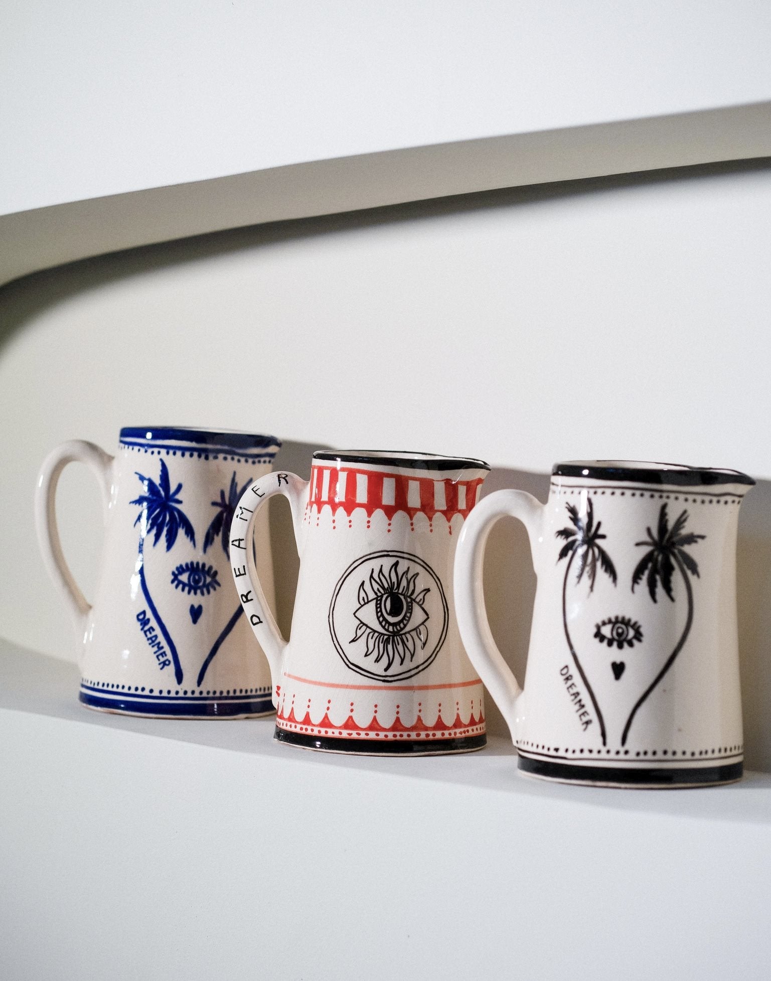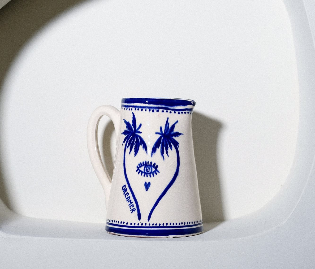 Dreamer Palmtree water karaf in Marjorelle blauw/wit. Zowel geschikt als waterkan maar ook stylish als vaas te gebruiken. Zo verfijnd, zo tijdloos, perfect veelzijdig en handgeschilderd. Ze mixen & matchen prachtig met de verschillende serviesstijlen.