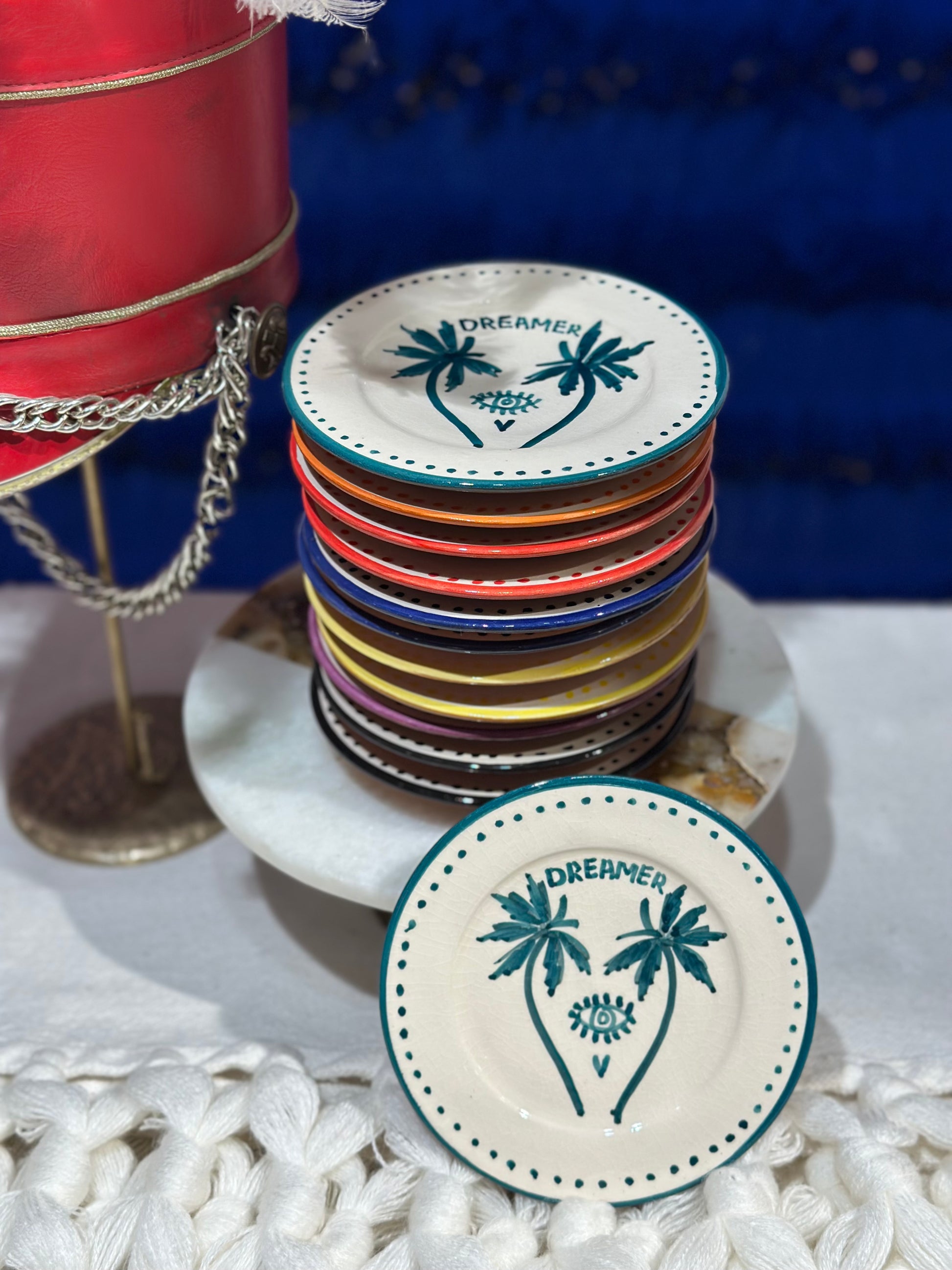 De Dreamer Palmtree borden, van tapas bordjes tot diner borden, om te shinen op iedere tafel. Handmade with Love.