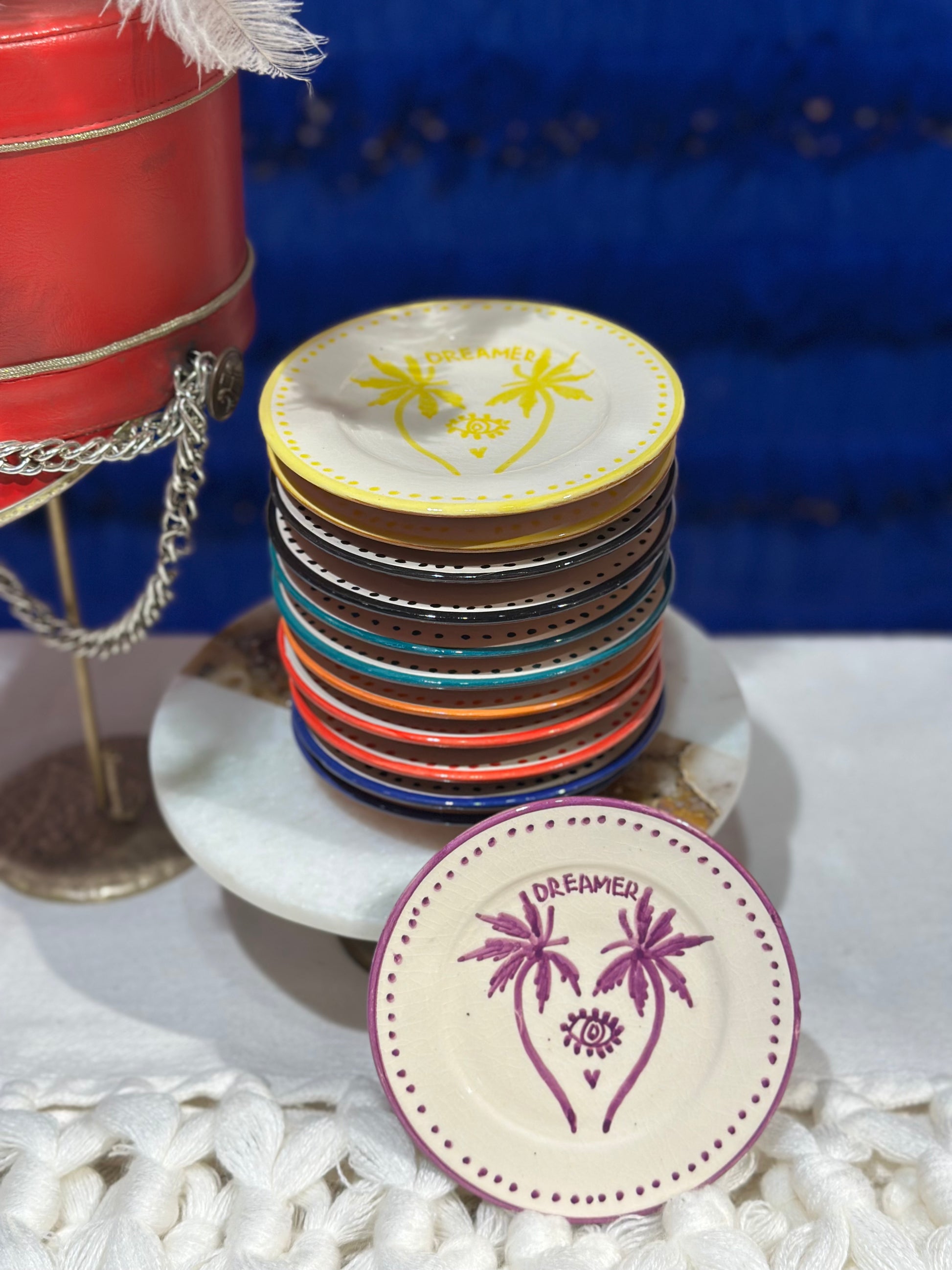 De Dreamer Palmtree borden, van tapas bordjes tot diner borden, om te shinen op iedere tafel. Handmade with Love.