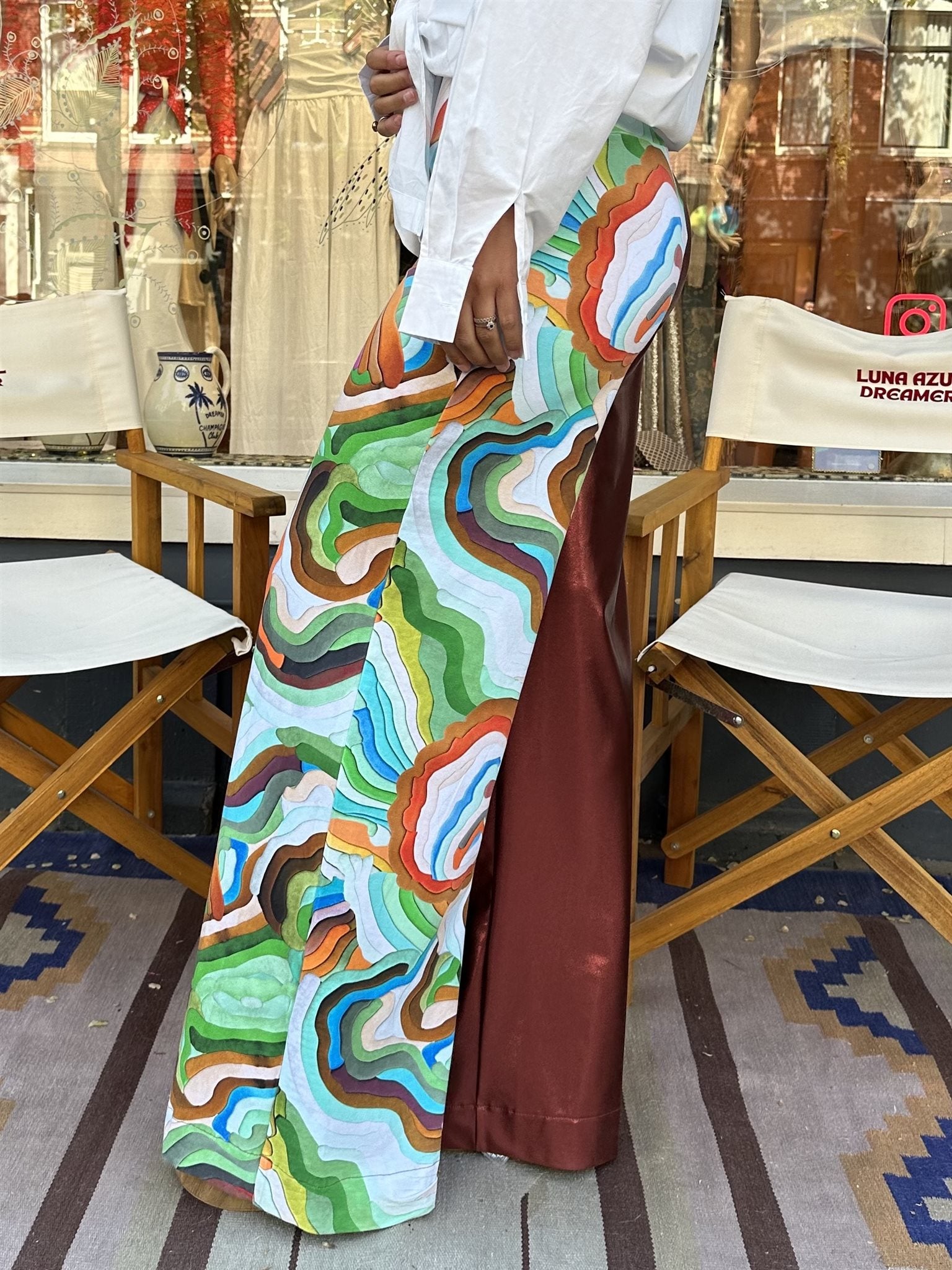 De Dreamer Soul Double Trouble is de ultieme combinatie van comfort en stijl. De ultieme Festival look! Gemaakt van zachte, stretchy jersey, met een wide-leg fit en een brede tailleband die heerlijk aanvoelt en perfect zit. Statement piece ,de kleurrijke wave print maakt deze broek een echte eyecatcher. Perfect op maat,valt precies zoals het hoort, voor een effortless fit.