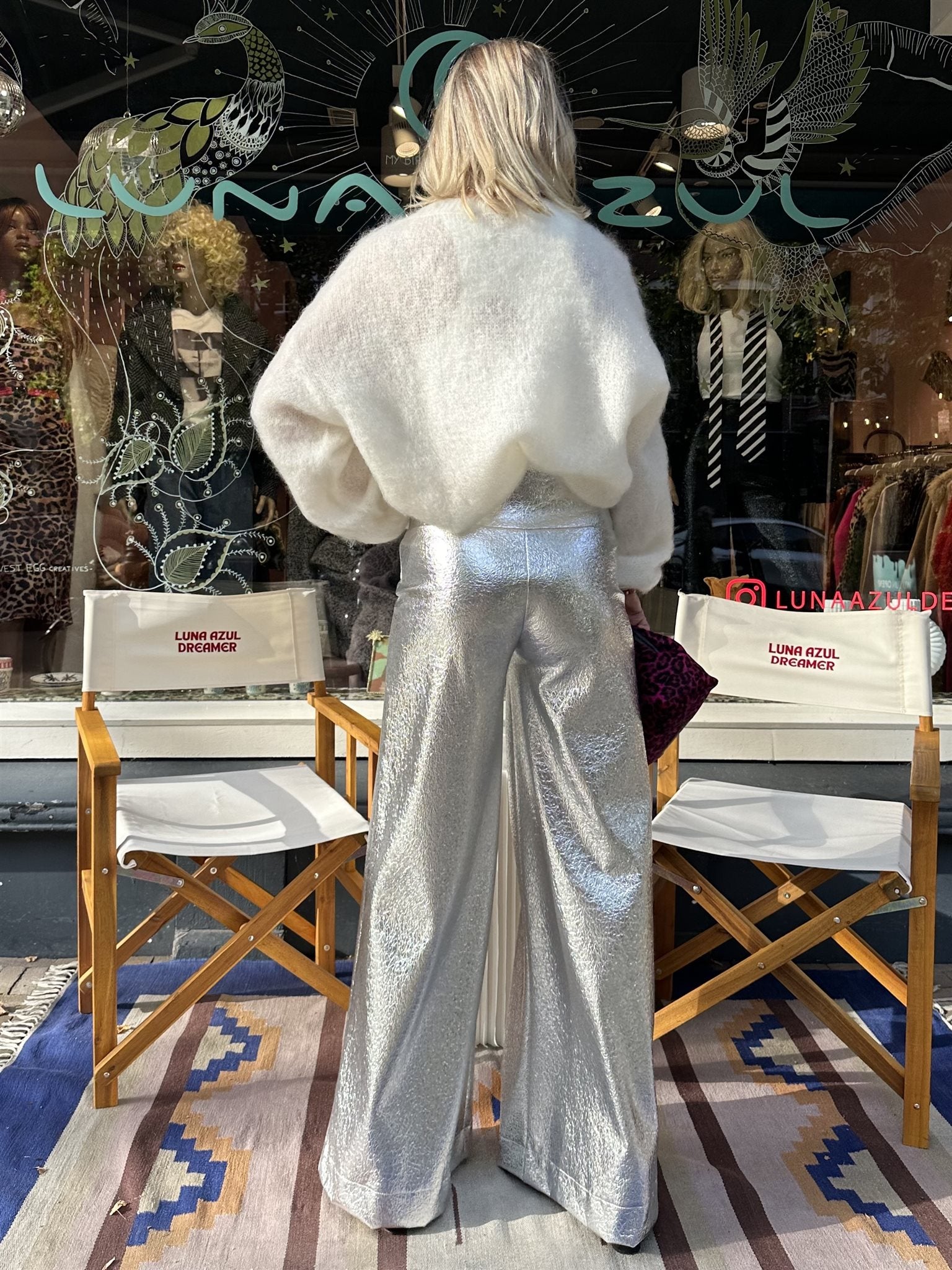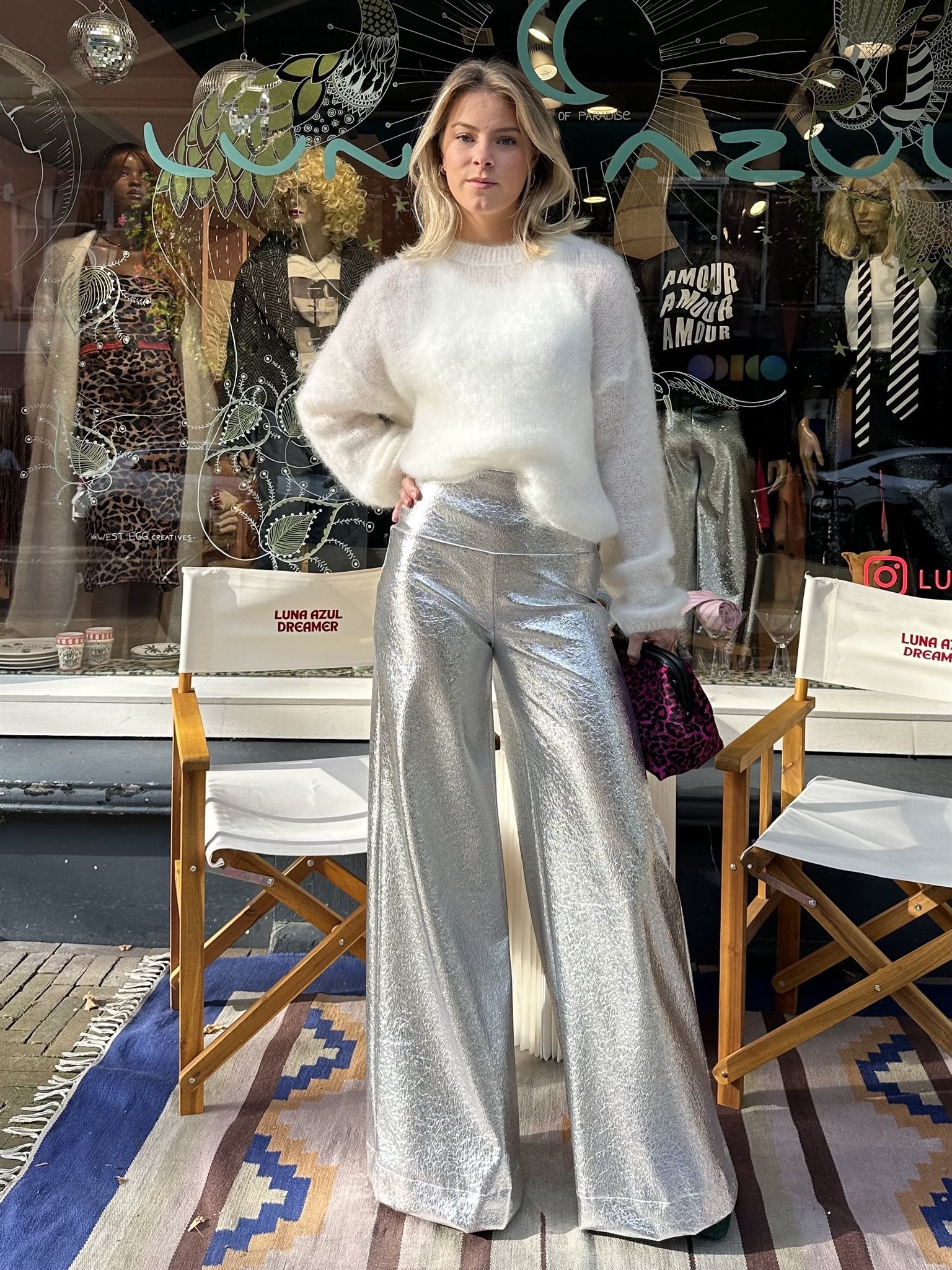 Dreamer Soul Metallic Pants. Make a bold statement with the Dreamer Soul Metallic Pants! These shimmering wide-leg trousers are the ultimate blend of edgy and elegant. Chic Pairing: Combine with a silky pastel blouse and heels for a sophisticated evening look. Edgy Vibes: Style with a graphic tee and leather jacket for a rock-inspired outfit. Effortless Glam: Add a cozy knit sweater and sneakers for a laid-back yet stylish feel. Shine bright, Dreamers – these pants are your go-to for turning heads!